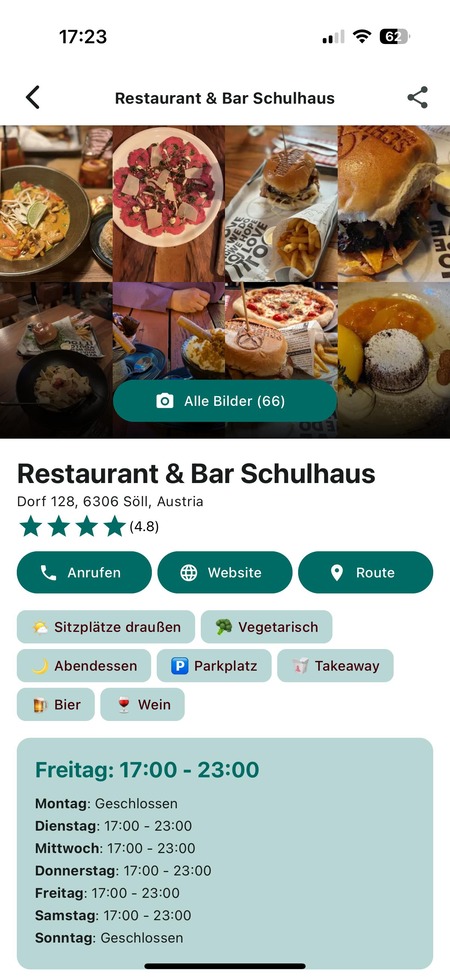 Sobald du dein Lieblingsrestaurant entdeckt hast, kannst du es direkt aus der App anrufen oder bequem einen Tisch reservieren. Kein Umweg, kein Aufwand – einfach entspannt planen und genießen.