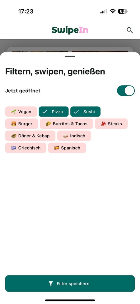 Du suchst vegetarisch, asiatisch oder nur mit Top-Bewertungen? Stell dir dein perfektes Restaurant-Erlebnis zusammen – mit individuell einstellbaren Filtern ganz nach deinem Geschmack.